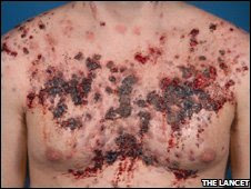 Anonymous #1 – the actual quote from the article says, “Dr Gerber added that the man did not stop taking the steroids once the skin problems developed because he was more concerned with losing muscle mass.