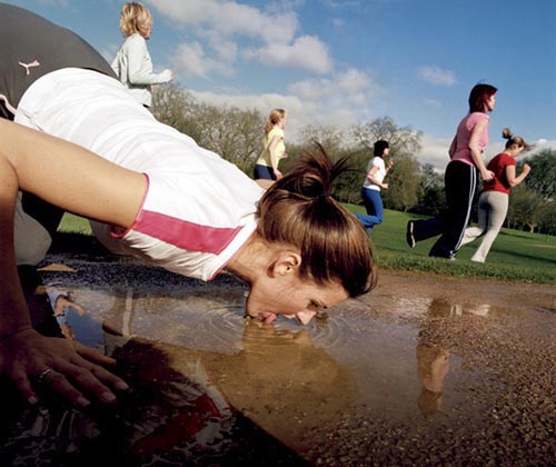 The girl in the pic is licking the puddle!