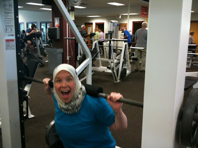I think I probably could have added a little weight though on my sets. That's the benefit of having some gym buddies–people to push you to do more. Working out on a Sunday night at my gym means not a lot of women around and doing moves like "hump the ceiling" just make me want to hurry up and get it over with!