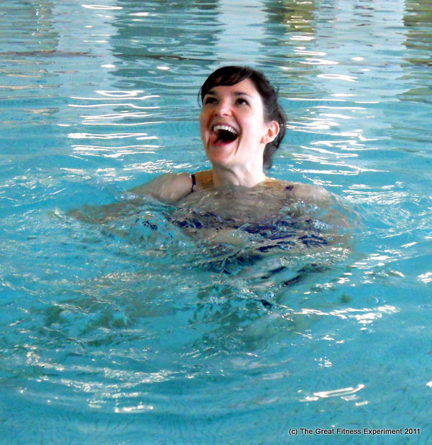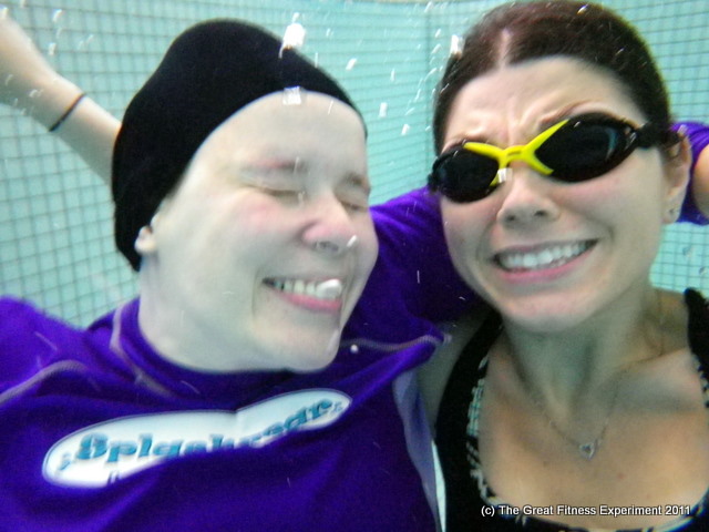 I am laughing hysterically for some reason – because Krista told me I look like a hyperactive 5-year-old? Because someone took an underwater shot of me picking my swimsuit wedgie (aHEM!)? Because the old folk’s pool class right next to us was playing oldies?? The whole hour was one long laugh fest.