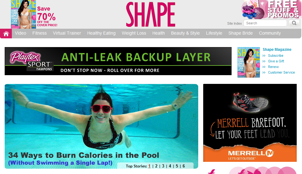 First of all, congrats on another Shape.com article/slideshow. I checked it out and, while I hate swimming, I thought it was VERY well thought out, VERY diverse in its exercises, and could be used by a lot of people I know. It actually could be a good little book all by itself because I don’t think there’s that much like it.