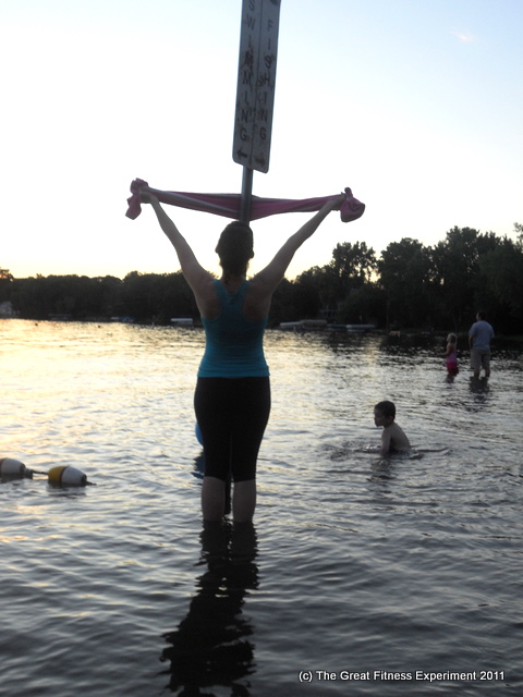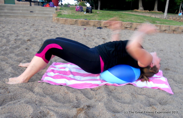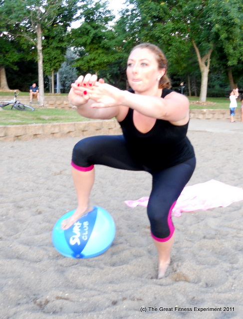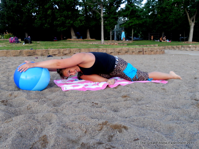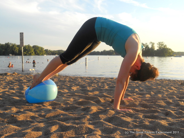Our sturdier beach ball floated away so I was stuck trying to do a pike push-up on a 99-cent inflatable.