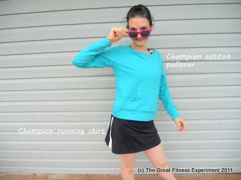42. Oh geez. I never had a good ‘workout outfit’ for the longest time. I always just grabbed a t-shirt and random pants or shorts from my drawer. I have to say I might have had a few zip up hoodies and pants that matched, but I didn’t really wear them together. I finally broke down and got official running gear this year and I went with Nike because they have these amazing spandex capris with a zip up pocket on the bum that can hold my phone. I’ve never tried Champions stuff!