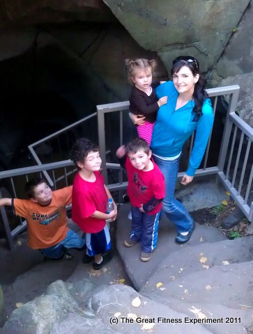 We did a little spelunking. Note Jelly Bean holding onto my bra strap through my clothing – all the dark stinkiness freaked her out. It just felt like home to the boys though – you should see their room.