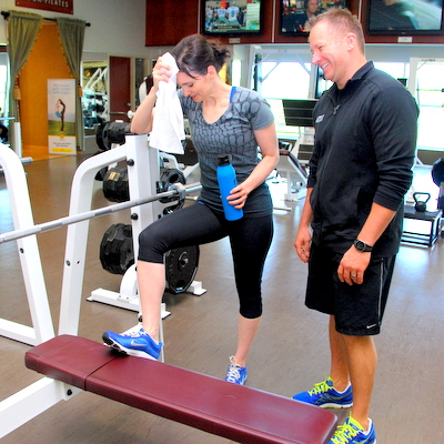 This picture cracks me up. It’s from a Shape photoshoot and Steve and I both hated it – I thought my thighs looked fat, he thought he had a double chin – but of course this ended up being the one they used as the lead pic on the story. We had a lot of laughs about this one. Also, that water bottle isn’t mine. He grabbed it from some random person in the gym. I’m trying desperately not to laugh. This is how I’ll always remember him: kicking my butt and making me laugh.