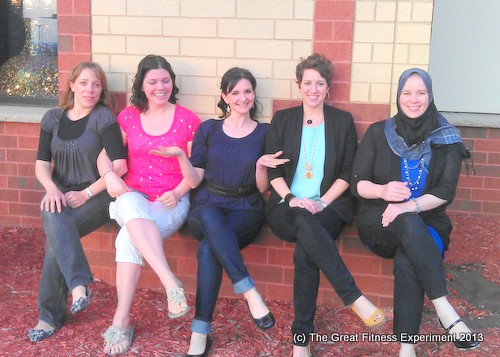We may look like we’re sitting on a nice, comfy bench but we’re actually doing a wall sit! And smiling! That’s what honing my quads with FitnessGlo has done for me!