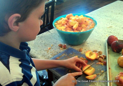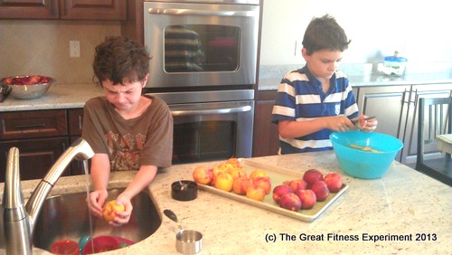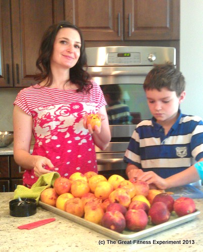 First step: Enlist some good helpers. I got my two eldest to help me peel and slice the peaches after blanching.