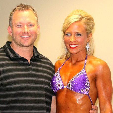 With his beautiful wife at her fitness show. They met at the gym. Awww!