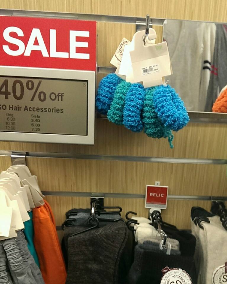 Found these on the way. Scrunchies! They’re baaaaaack! In the 90’s I seriously owned SO MANY scrunchies. I always had one on my wrist, like a squishy germ-infested bracelet.