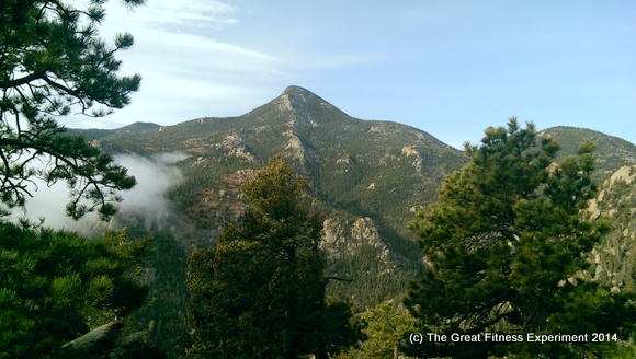But all of us are stubborn so we just kept putting one foot in front of the other. Did I mention both Beth and Rachel live at sea level? So already Denver’s 6,000 foot elevation was working against them. At least I was acclimated. Not that you’d know it by my wind-sucking and mental cursing. Finally we came out of the switchbacks to this. This isn’t Pike’s Peak but it was a gorgeous view and we’d finally gotten above the cloud line, going from murky dawn to perfect Colorado spring day!