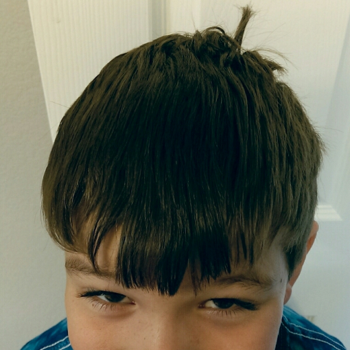 The drama this time around was because Son #3, my soon-to-be second grader, for some weird reason has decided his forehead must be covered in hair at all times. He wants bangs that touch his eyelashes but everything else shaved down to his scalp. Basically this is his dream: